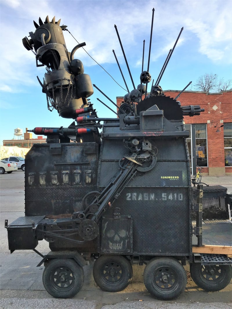 It made me wonder why every other town doesn’t push their business owners to be as creative as the ones I passed in Deep Ellum. I would love to see more craft breweries incorporate…apocalyptic fantasy tanks…like the one outside BrainDead Brewing. (Not to mention the excellent art displayed within BrainDead as well.